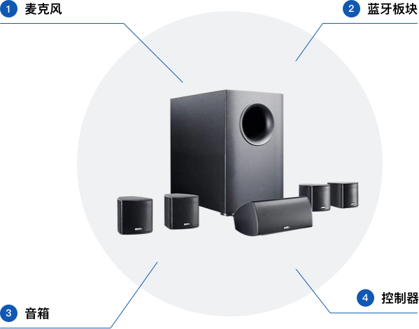 智能音響系統(tǒng)包含了麥克風(fēng),藍(lán)牙板塊、音箱、控制器等一系列套件,適用在智能沙發(fā)、智能床、智能車(chē)載音響等領(lǐng)域,為智能化視聽(tīng)設(shè)備提供更舒適的解決方案。